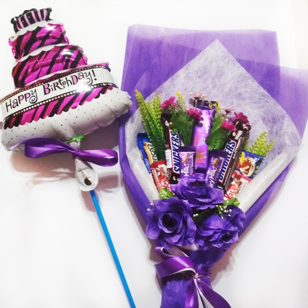 Hadiah Hari Jadi Surprise Birthday Chocolate Bouqet Violet Orchid With Hb Balloon Penghantaran Ke Seluruh Malaysia Shopee Malaysia